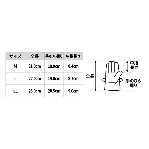 中指長さ90mm材質掌部:ポリウレタン合成皮革