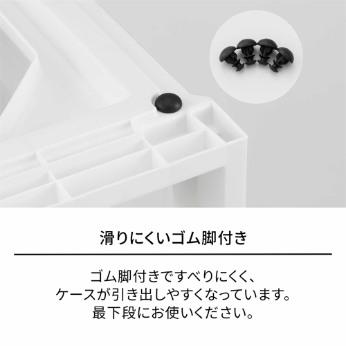 付属のゴム脚を付けるとケースが引き出しやすくなっています。最下段にお使いください。