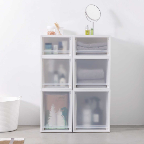 うっすら透けて見える為、収納物が認識できる実用性も兼ね備えています。(高級感のあるすりガラス調)