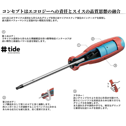グリップエンドには先端形状アイコンを表示し、作業中でも欲しい1本を瞬時に識別できます。