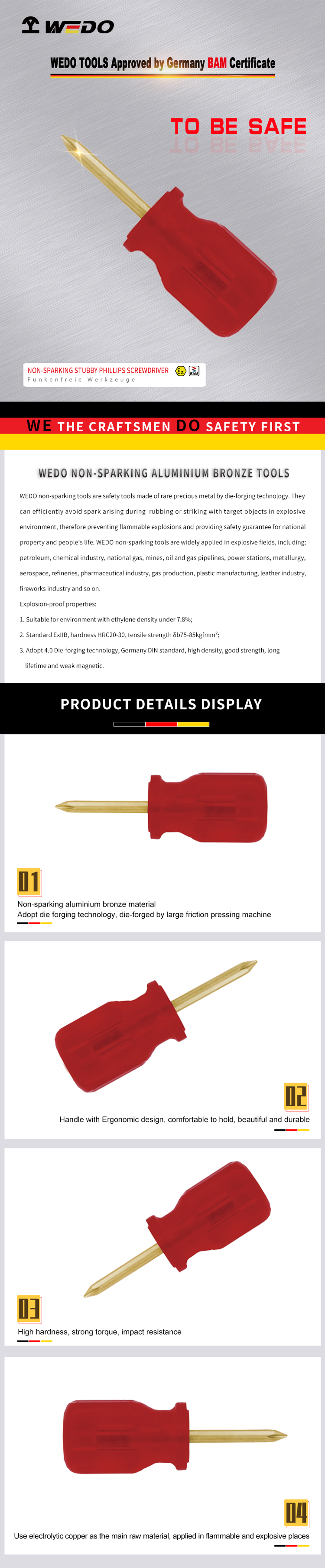 | アルミニウム青銅製で、石油、化学、鉱山、発電所、ガス製造、プラスチック製造など可燃性・爆発性のある場所で使用可能 |