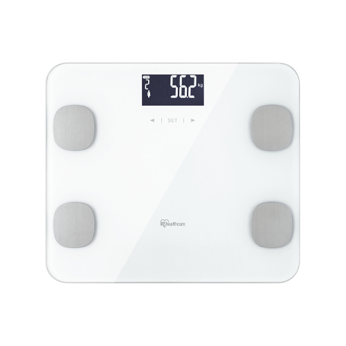 | 体組成計に乗るだけで測定がスタートし、測定が完了すると測定結果を順に2回繰り返して表示します。 |