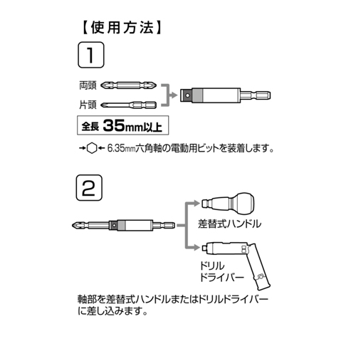 電動ドライバードリル(7.2V以下)や差替式ドライバーハンドルと組み合わせてトルクドライバーとして使用できます。