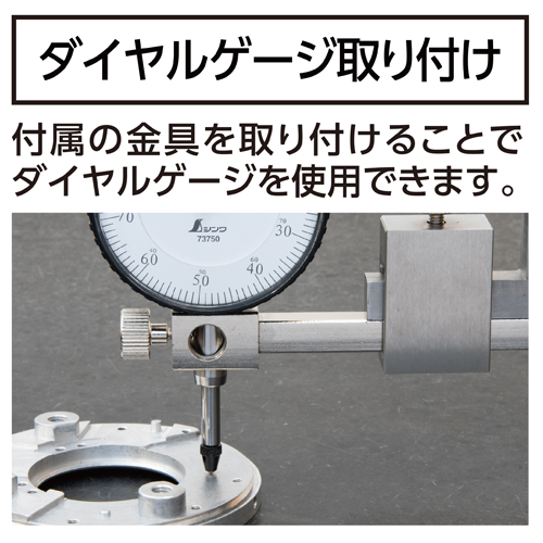 ダイヤルゲージを取り付けて、平面度、平行度、偏芯測定に使用できます。
