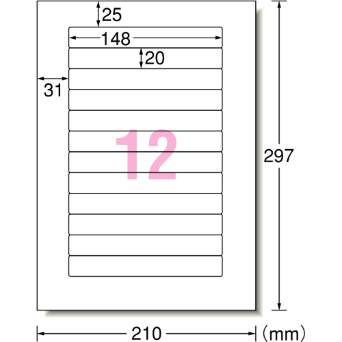 品名 : A4判/12面 148x 20 mm プリンターラベル(12枚)