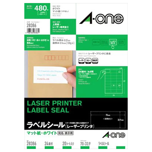 品名 : A4判/24面 70 x 33.9mm プリンターラベル(20枚)
