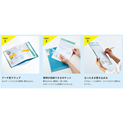 丈夫なシートの採用で、立ったままでも書き込みやすい。