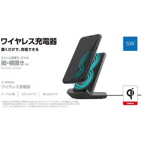 スマートフォンを置くだけで5Wで充電ができる、Qi規格対応ワイヤレス充電器です。 WPC(ワイヤレスパワーコンソーシアム)が策定したワイヤレス給電の国際標準規格「Qi(チー)」に準拠した正規認証品です。 ※エレコムはワイヤレスパワーコンソーシアムの正規会員企業です。 |