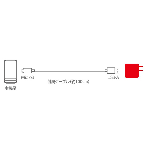 | ※本製品にはUSB出力アダプタ(AC充電器等)は付属しておりません。本製品をご利用いただくには出力5V/2A以上のUSB出力アダプタを別途ご用意ください。 |