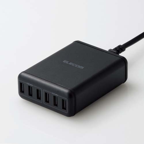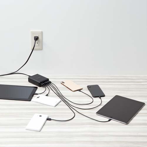 6つのUSBポートを搭載し、スマートフォンやタブレットのほかさまざまなUSB機器をこれ一つで急速充電できるAC充電器