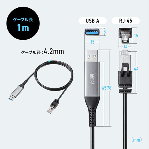 | コネクタ形状 | USB A - RJ-45 | ケーブル長 | 1m |