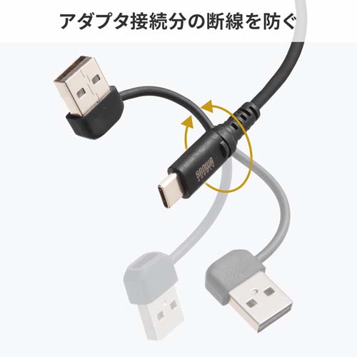 | 変換アダプタとケーブルの接続部が回転し、アダプタ接続部の断線を防ぐ |