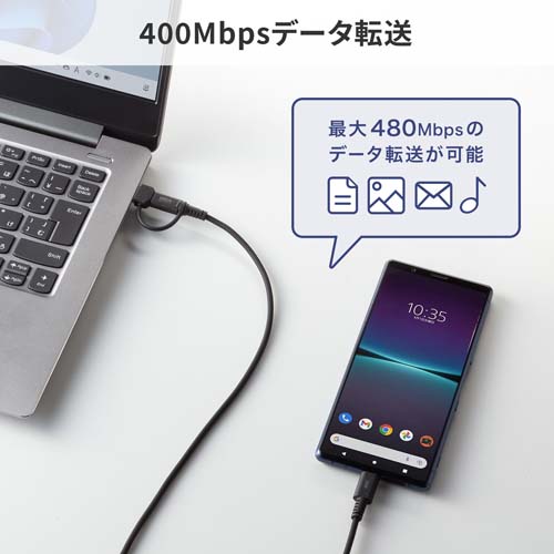 | USB2.0 Type-CケーブルにType A変換アダプタが付属している2in1設計 |