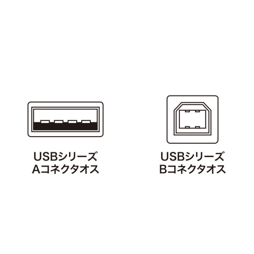 USB2.0規格・USB1.1規格準拠のパソコンとUSB機器(プリンター・HDD・USBハブ・スキャナ等)との接続や、USBハブとUSB機器を接続する時に使用するケーブルです。(「シリーズA」コネクタを持つ機器と「シリーズB」コネクタを持つ機器とを接続します)