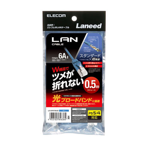 EA764BB-0.5A 0.5m LANケーブル(カテゴリー6A準拠)[ブルー]