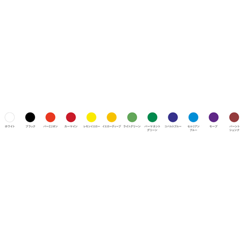 セット内容ホワイト×2・ブラック・バーミリオン・カーマイン・レモンイエロー・イエローディープ・ライトグリーン・パーマネントグリーン・コバルトブルー・セルリアンブルー・モーブ・バーントシェンナ
