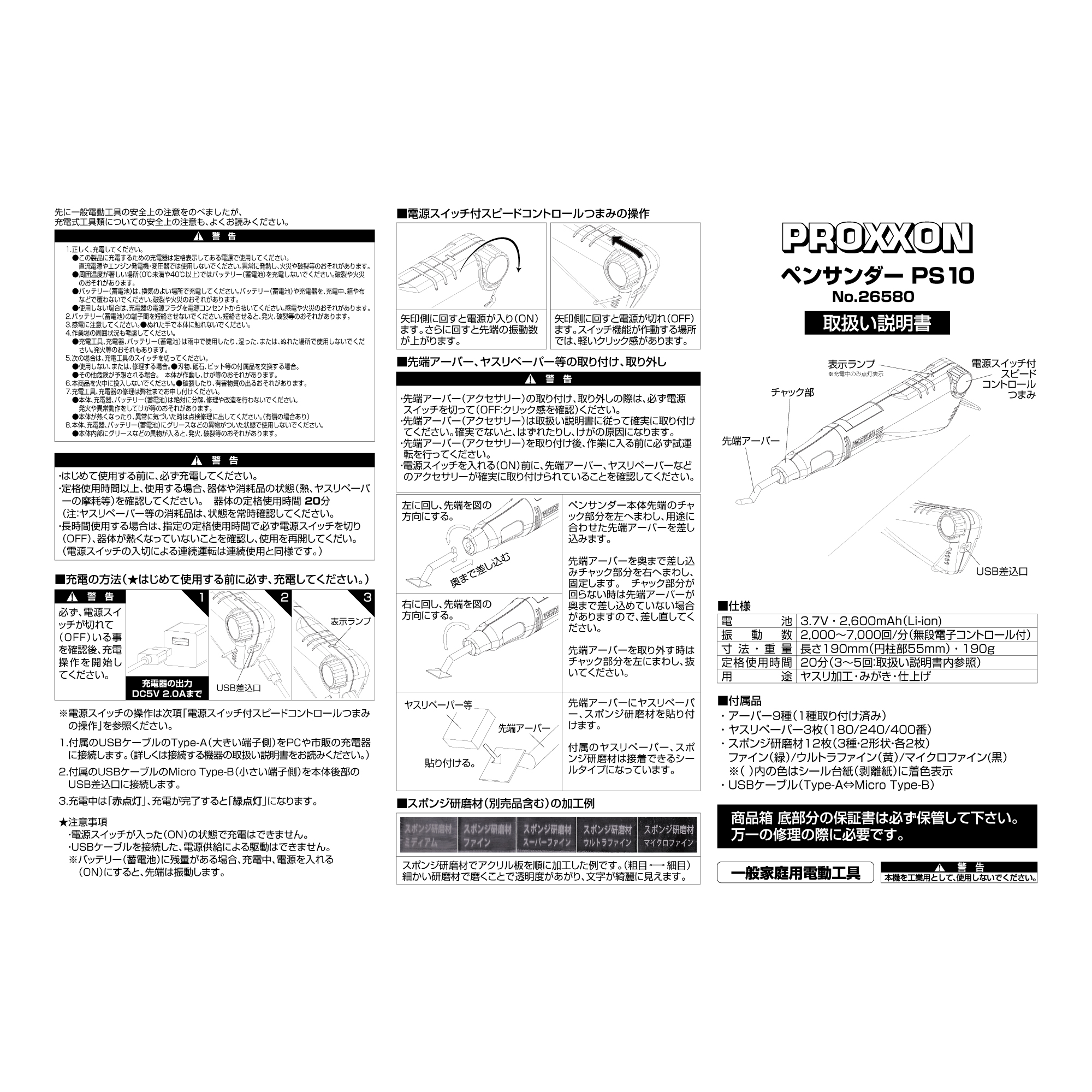 品名 : DC 3.7V ペン型サンダー(充電式)