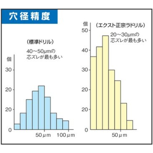| センターリング性能が良いためポンチは不要、穴径精度が良く揃います。 |