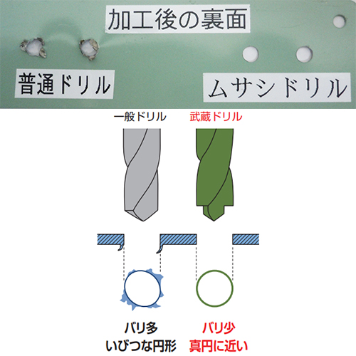 薄い板物やプラスチック樹脂でも割れる事なく、裏バリが出ないきれいな穴があけられます。