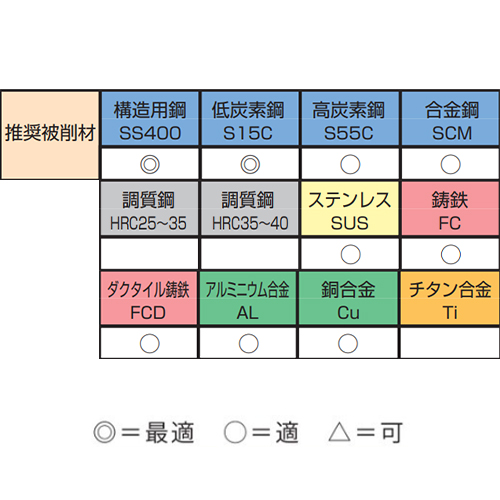 対応被削材構造用鋼、低炭素鋼、高炭素鋼、合金鋼、ステンレス、鋳鉄、ダクタイル鋳鉄、アルミニウム合金、銅合金入数1本