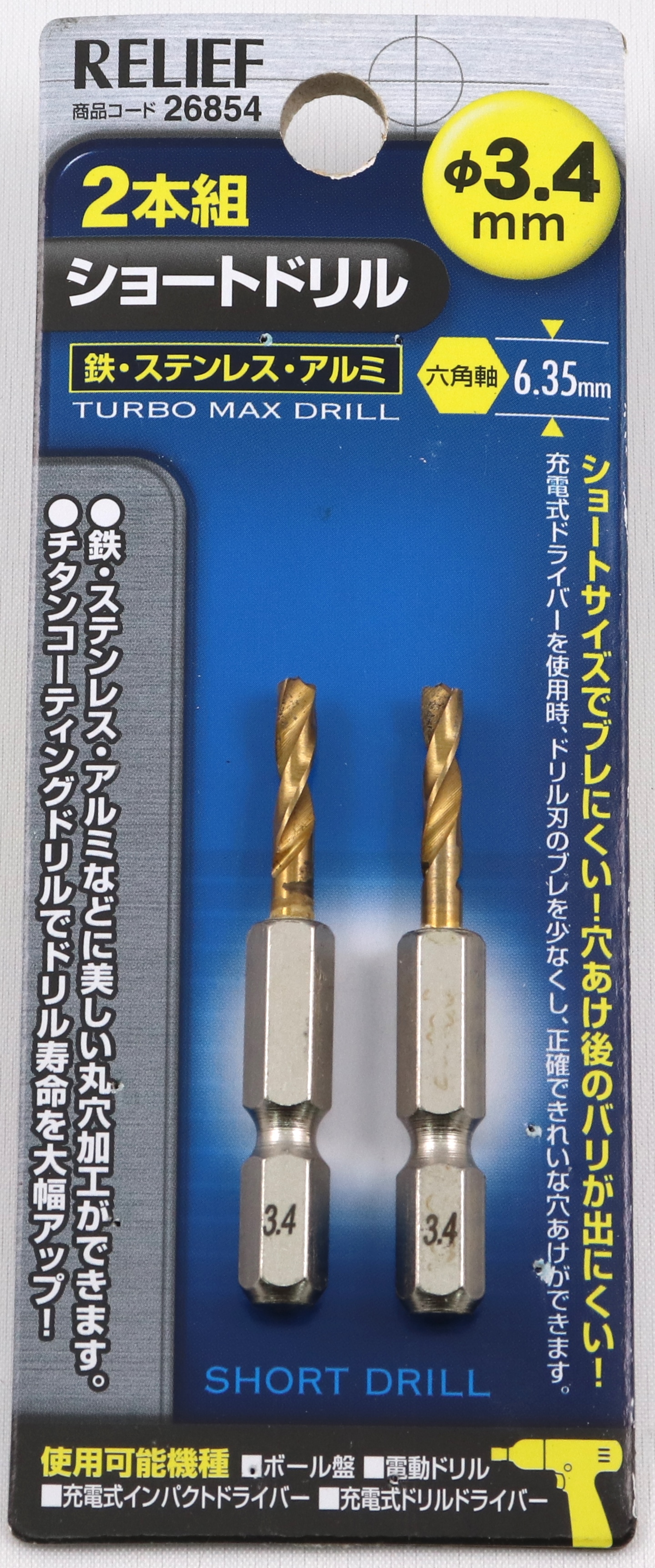 品名 : 3.4x 51mm ドリルビット(1/4"六角軸・2本)