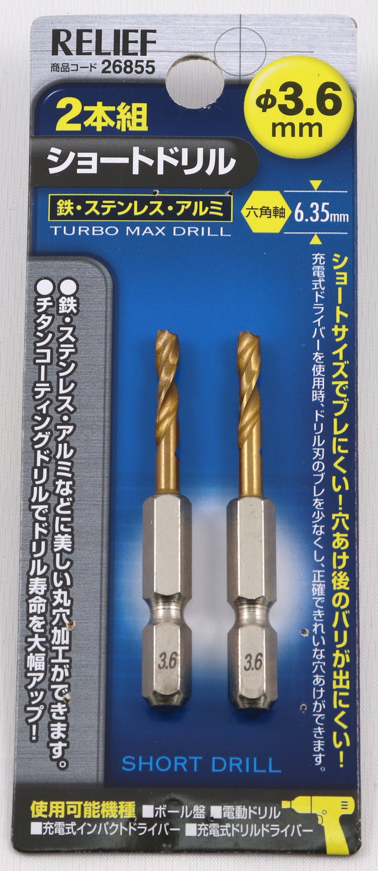 品名 : 3.6x 51mm ドリルビット(1/4"六角軸・2本)