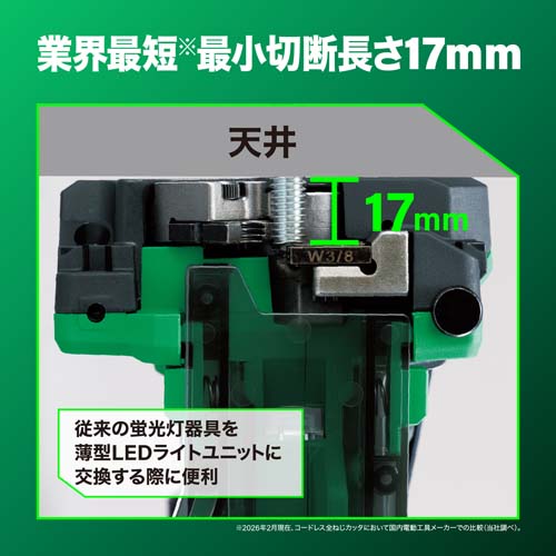 【業界最短の最小切断長さ】 全ねじの出張り長さ17mmを実現しました。従来の蛍光灯器具を薄型LEDライトユニットに交換する際に便利です。 |