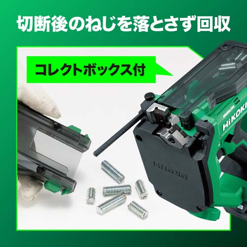 【コレクトボックス付き】 ワンタッチで着脱可能なコレクトボックスは、切断後の全ねじを落とさずに回収できます。 |