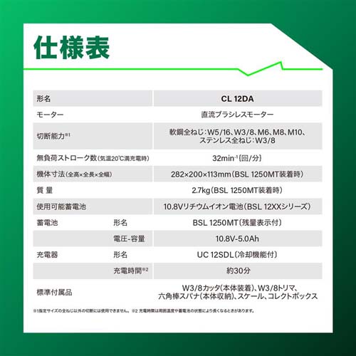 | メーカー | HiKOKI | 型番 | CL12DA(JS) |
