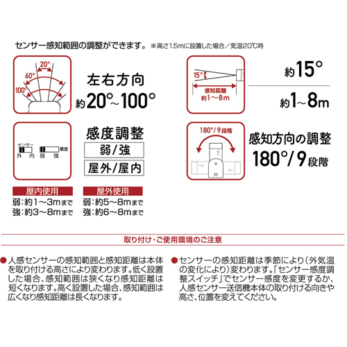 使用エリア屋内・屋外防水仕様IP55(送信機のみ)