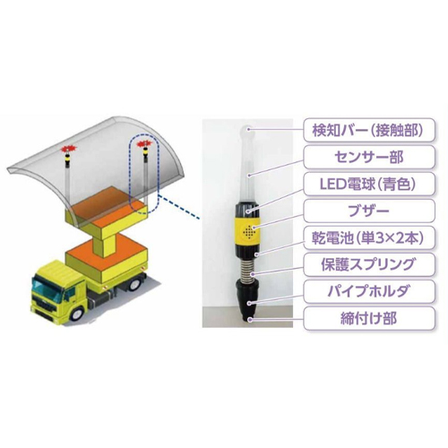 | 用途 | 高所作業車でのはさまれ事故防止に | 電源 | 単3×2個(テスト電池付属) |