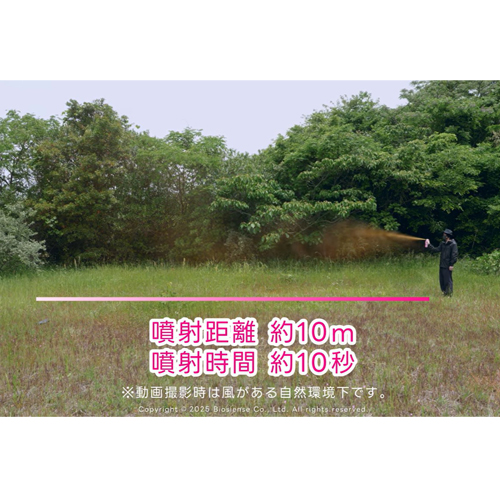 噴射時間約10秒(無風の状態。風などの環境要因により変動します)有効成分カプサイシン2%以上(カプサイシノイドを含む)
