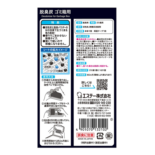| 使用目安 | ゴミ箱1個につき1個 | 成分 | 活性炭、無機系消臭剤 |
