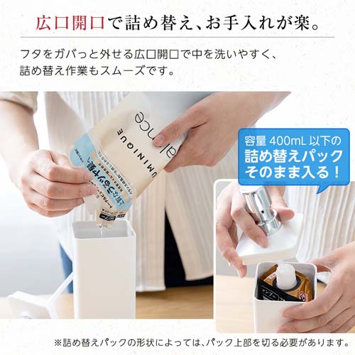 | 取り外せるフタで開口部が大きいので、詰め替えが簡単。 |
