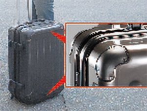 ハンドルが外付けタイプなので、ケース内がフラットで収納力大 |