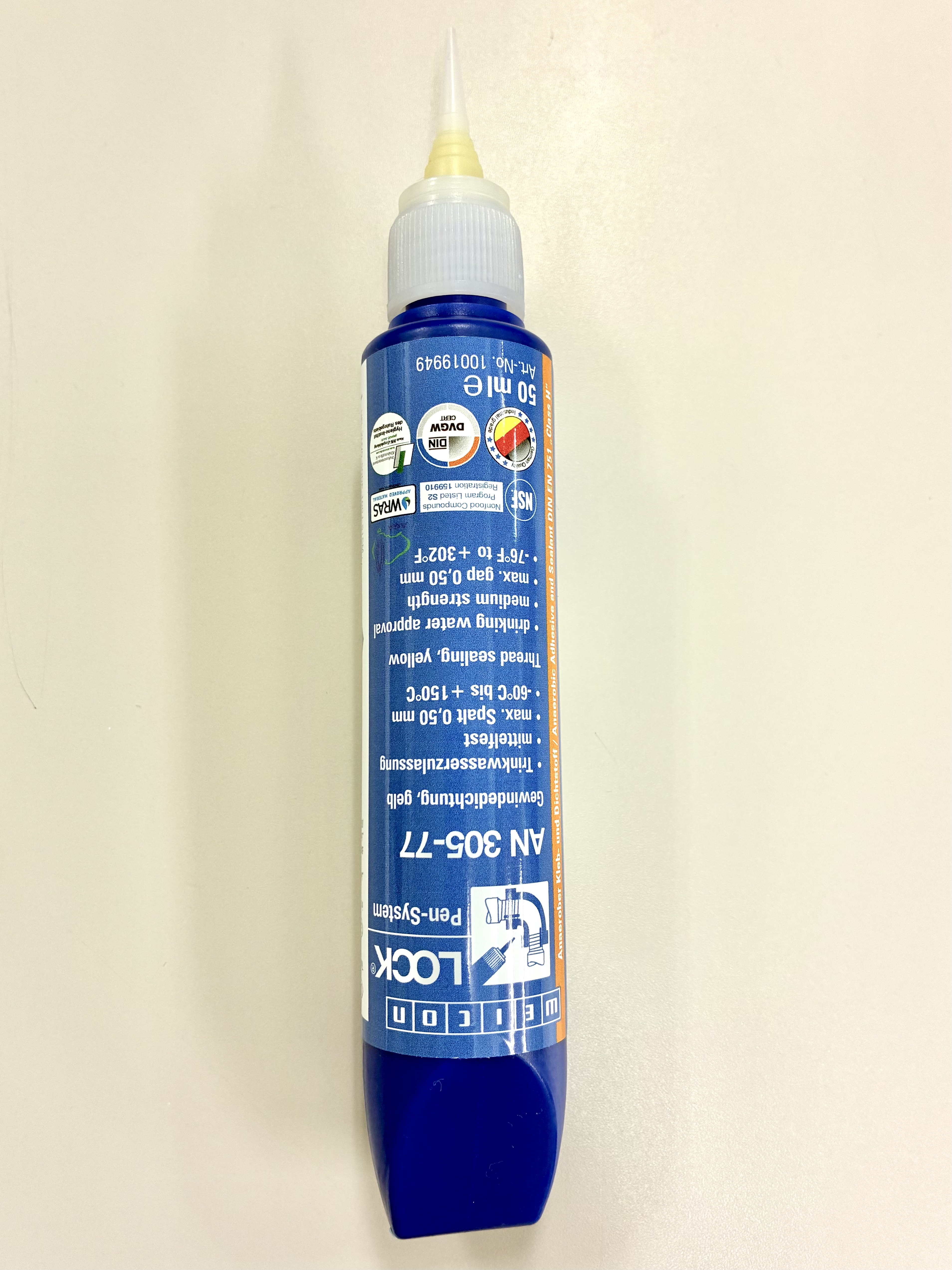 | 用途 | ネジ接続部の密封用シーリング | 保管方法 | 本品は未開封の状態で、室温で24ヵ月保管可能。 直射日光を避けて保管してください。 本品のボトル内の空気が本品を液状に保ちます。 |