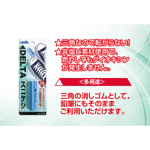 | 商品名 | デルタ スニケシ(シューズクリーナー) | サイズ | 正三角形1辺20mm×60(L)mm |