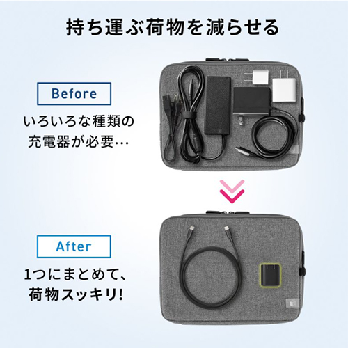 | 複数の充電器を用意することなく、外出先でもこれひとつあれば様々な機器を充電 |