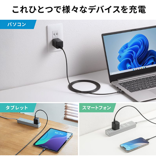 | USB PD最大対応出力 | 45W | 対応機種 | USB Type-Cポートを搭載しUSB Power Delivery 45Wの規格内での充電に対応したスマートフォン、タブレット、ノートパソコン |
