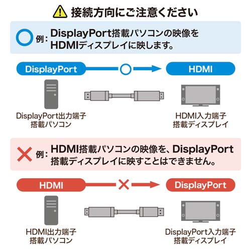 | DisplayPortを搭載したパソコンとHDMIインターフェースを持つディスプレイ・テレビとを接続するときに使用するケーブル |