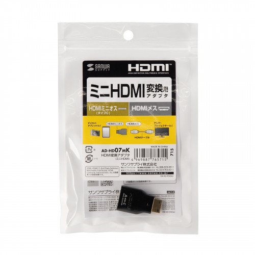 | コネクタ形状 | HDMIミニオス-HDMIメス(HDMIタイプCオス-HDMIタイプAメス) | サイズ | 19×32.3×9mm |
