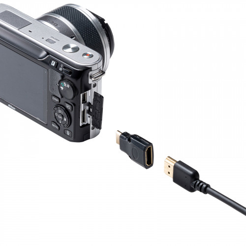 | HDMIケーブルをデジカメなどのミニHDMI(HDMIタイプC)端子に変換するアダプタです。 |