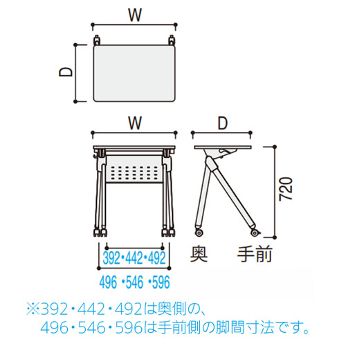 複数のテービルをまっすぐ収納できるスタッキング機能付