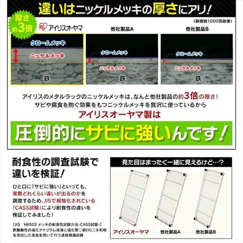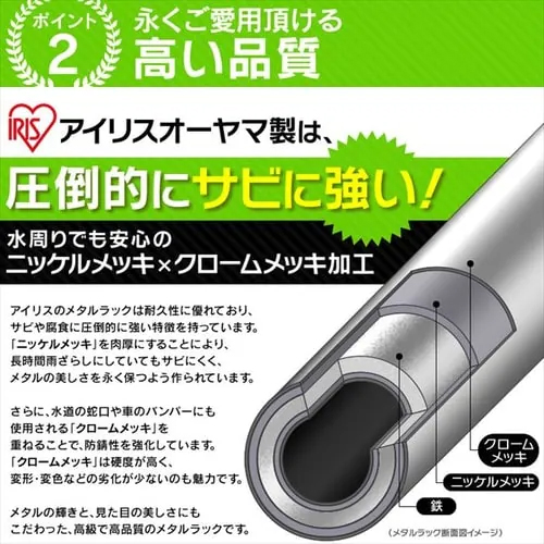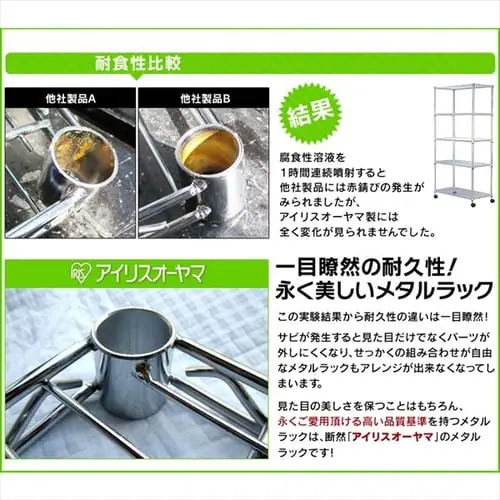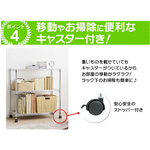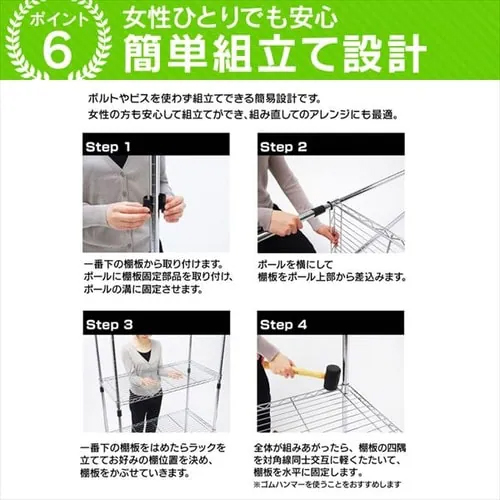 ※注意※ | 【お客様組立品】 | 材質 | 棚板・ポール:スチール(クロムメッキ) キャスター:ナイロン樹脂 固定部品:ABS樹脂 |