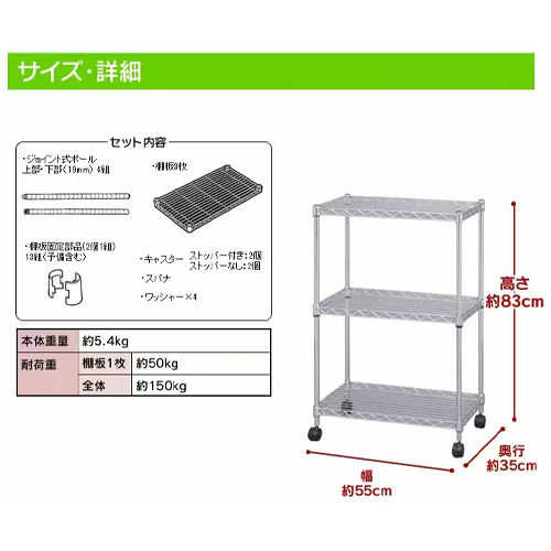 可動棚板枚数 | 3枚 | キャスター径 | φ50mm |