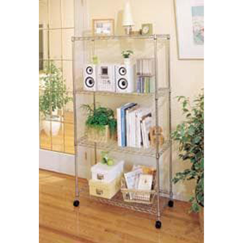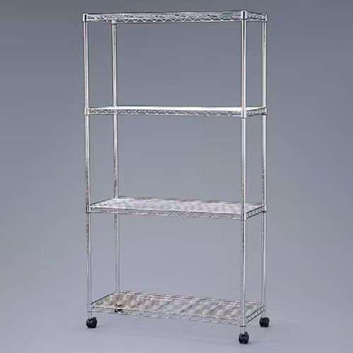 材質 | 棚板・ポール:スチール(クロムメッキ)、 キャスター:ナイロン樹脂、固定部品:ABS樹脂 | 耐荷重 | 静止時:全体150kg、棚板1枚あたり75kg 移動時:全体100kg |