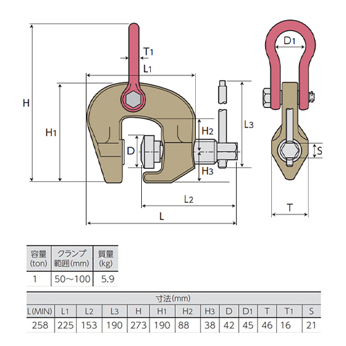 使用荷重1tクランプ範囲50~100mm
