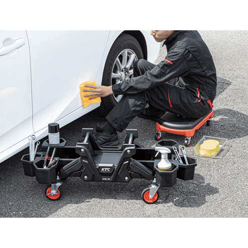| 座ったまま作業に必要な工具と一緒に移動可能です。 |