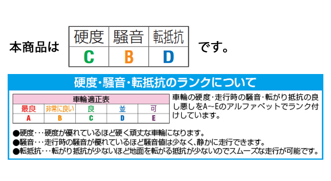 耐熱温度-25~80℃(60℃以上で負荷容量が低下)タイヤ硬度80ショアA