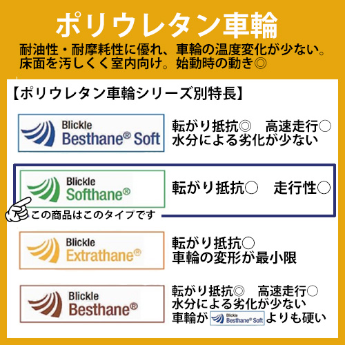 タイヤ硬度75ショアA耐荷重250kg(4km/h)